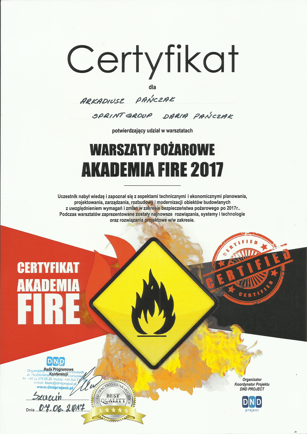W związku z dynamicznym rozwojem 2017 roku Sprint Group utworzył nowy pion "Stay Safe" zajmujący się tematyką bezpieczeństwa i higieny pracy. Zajmuję się on wszechstronnym wspieraniem klientów w dziedzinie bezpieczeństwa i higieny pracy, ochrony przeciwpożarowej oraz prawnej ochrony pracy.